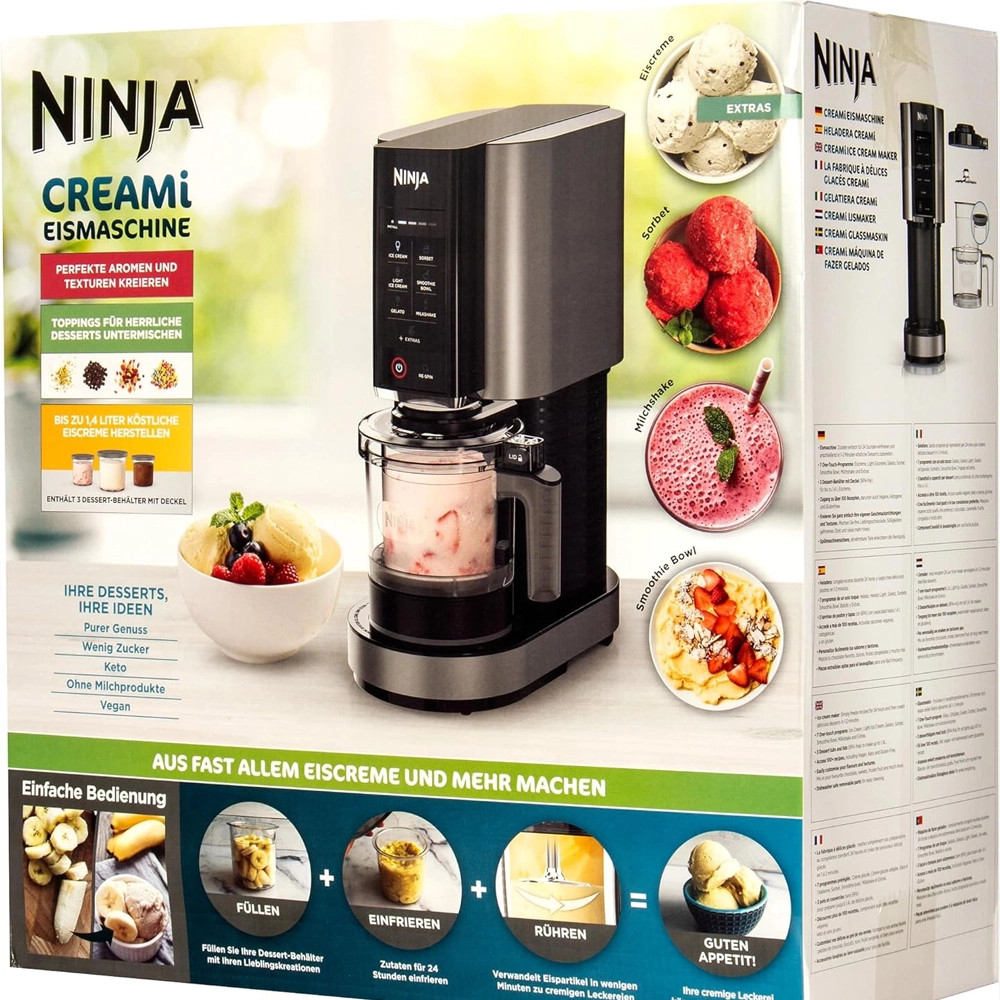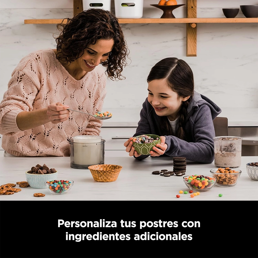 | يشمل وعاء، جهاز صنع الآيس كريم، وملعقة للتقديم. | |