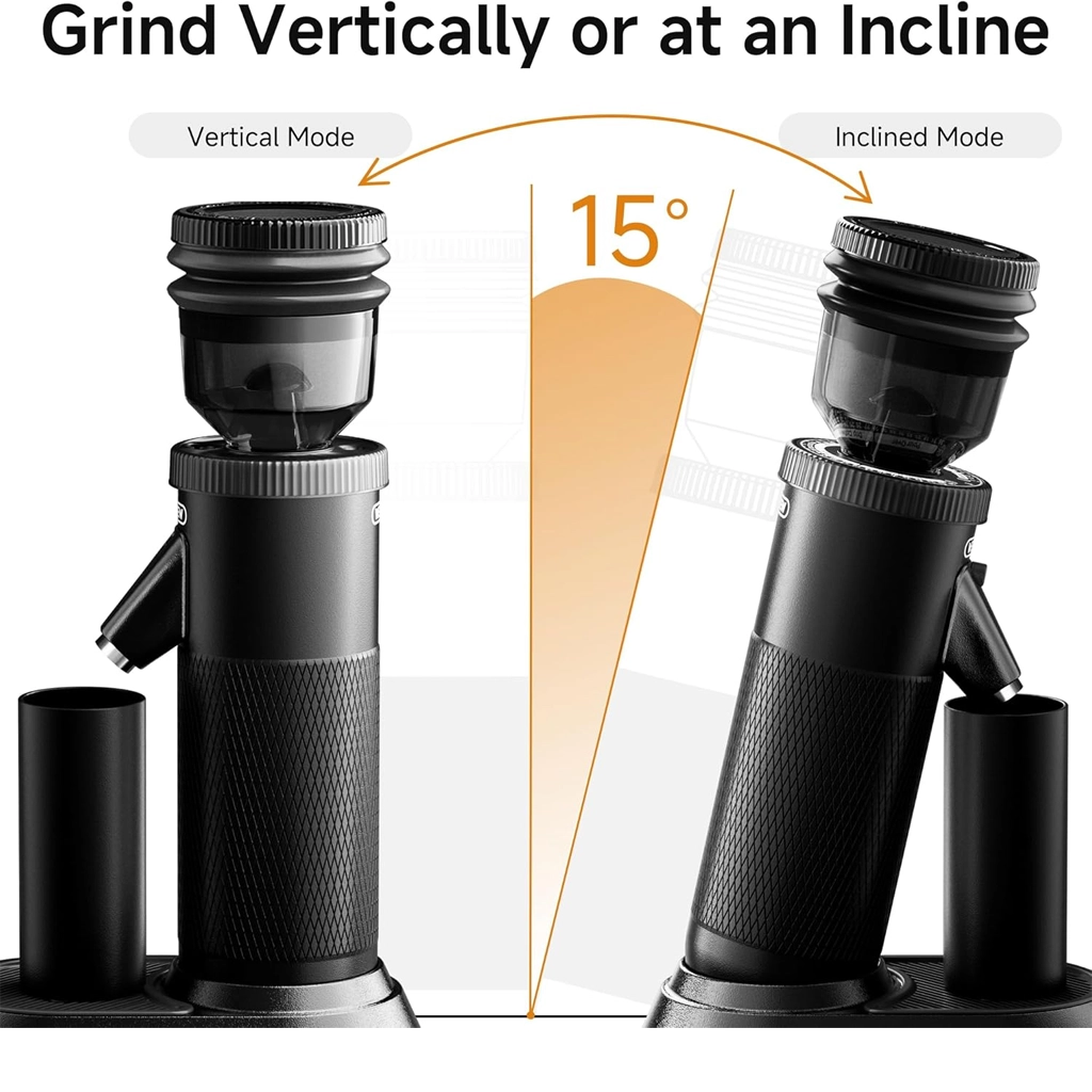 | تصميم مضغوط وفني | تصميم مضغوط يقلل من متطلبات المساحة في المطبخ، مع هيكل معدني أسود وتصميم مائل مبتكر بزاوية 15° لتسهيل إفراغ المسحوق، مما يمنحها مظهرًا فنيًا جذابًا. |