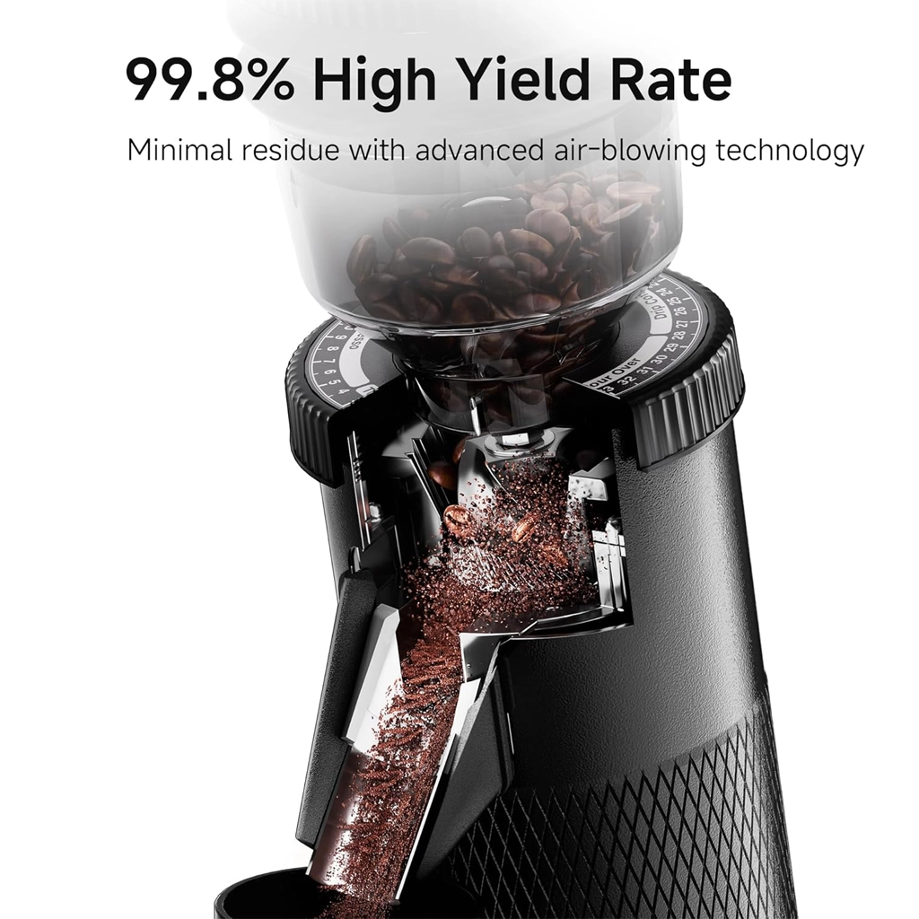| هيكل ألمنيوم قوي | طاحونة HiBREW G5 تأتي بهيكل من سبيكة الألمنيوم المتينة بتصميم سطح غير قابل للانزلاق، مما يعزز من عمر الجهاز. |